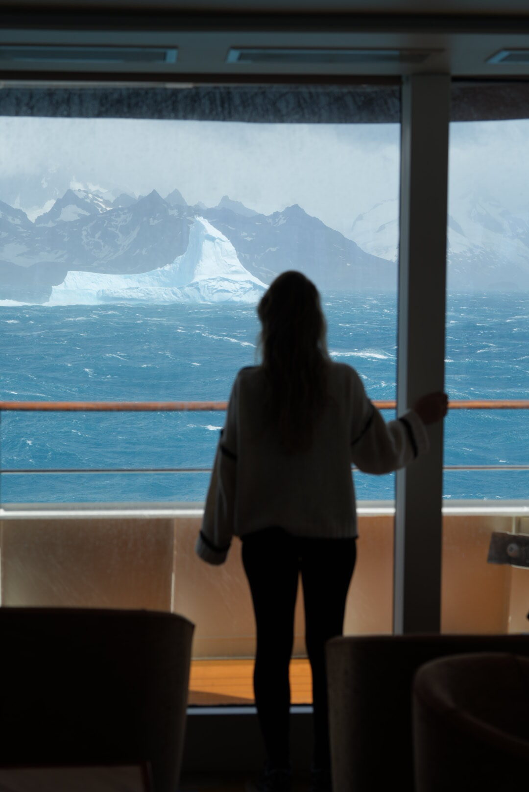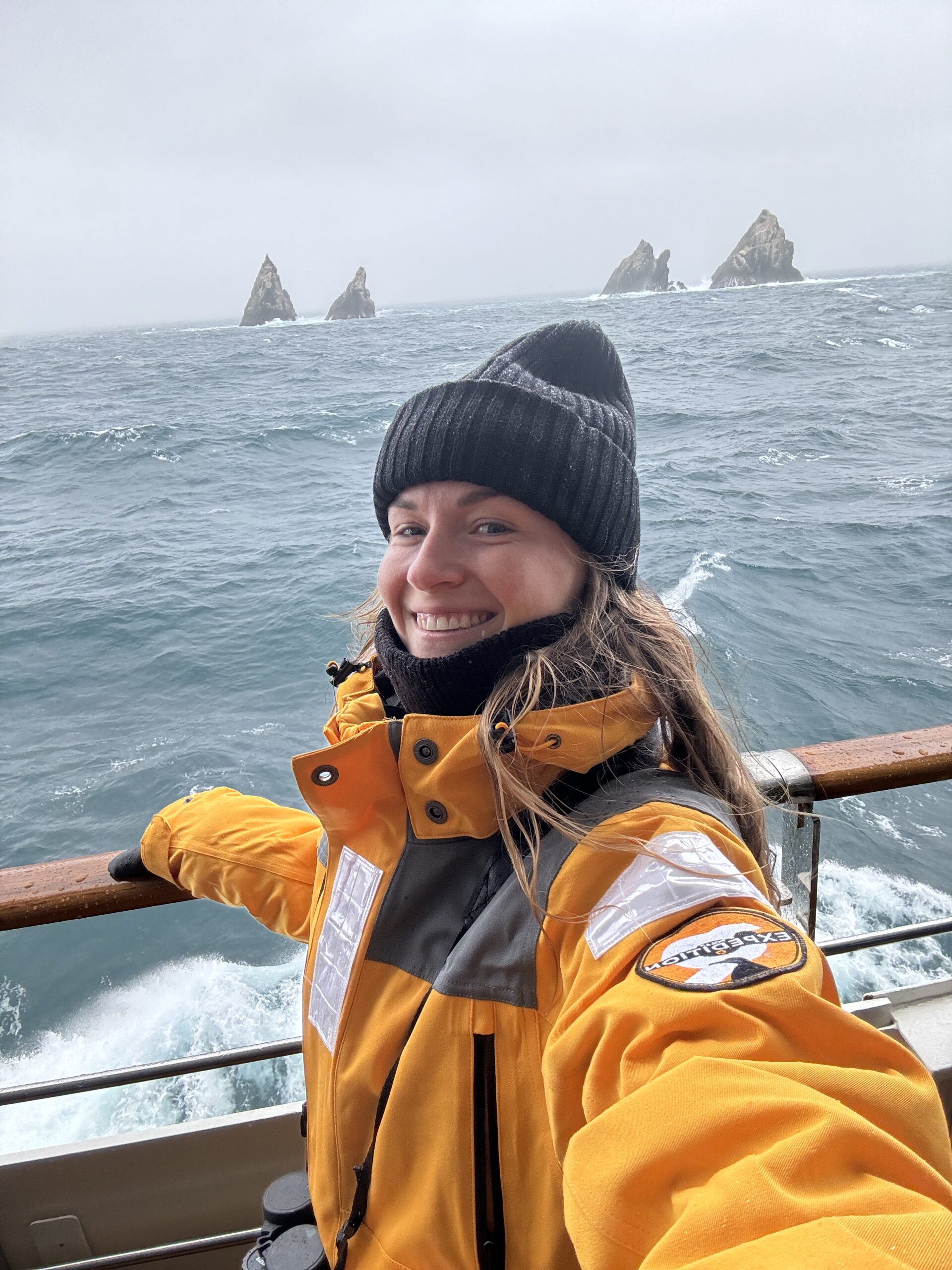 Am Anfang ging es durch den Beagle Channel – wir haben also weiterhin Land gesehen und hatten noch keine krassen Wellen. Wir haben schon die ersten Wale und die ersten Pinguine gesehen, bei Sonnenuntergang war das total magisch. In der ersten Nacht ging es dann aber raus aufs offene Meer. Man sieht einfach weit und breit nichts mehr und der Wellengang ist definitiv zu spüren. Wir mussten uns erstmal daran gewöhnen, bei solchen Wellen zu schlafen und sind nachts mehrmals wach geworden. Die ersten Tage hatte ich auch etwas mit Seekrankheit zu kämpfen, aber es wurde von Tag zu Tag besser. An Board konnte man sich bei der Rezeption auch immer eine Tablette gegen Seekrankheit geben lassen, bei den Seetagen haben wir jeden Tag eine genommen. Teilweise kann es schon ordentlich schaukeln.