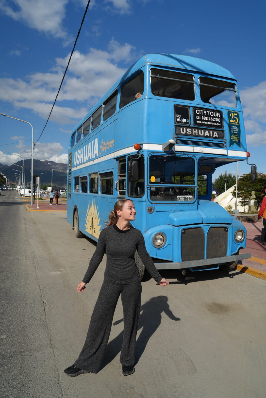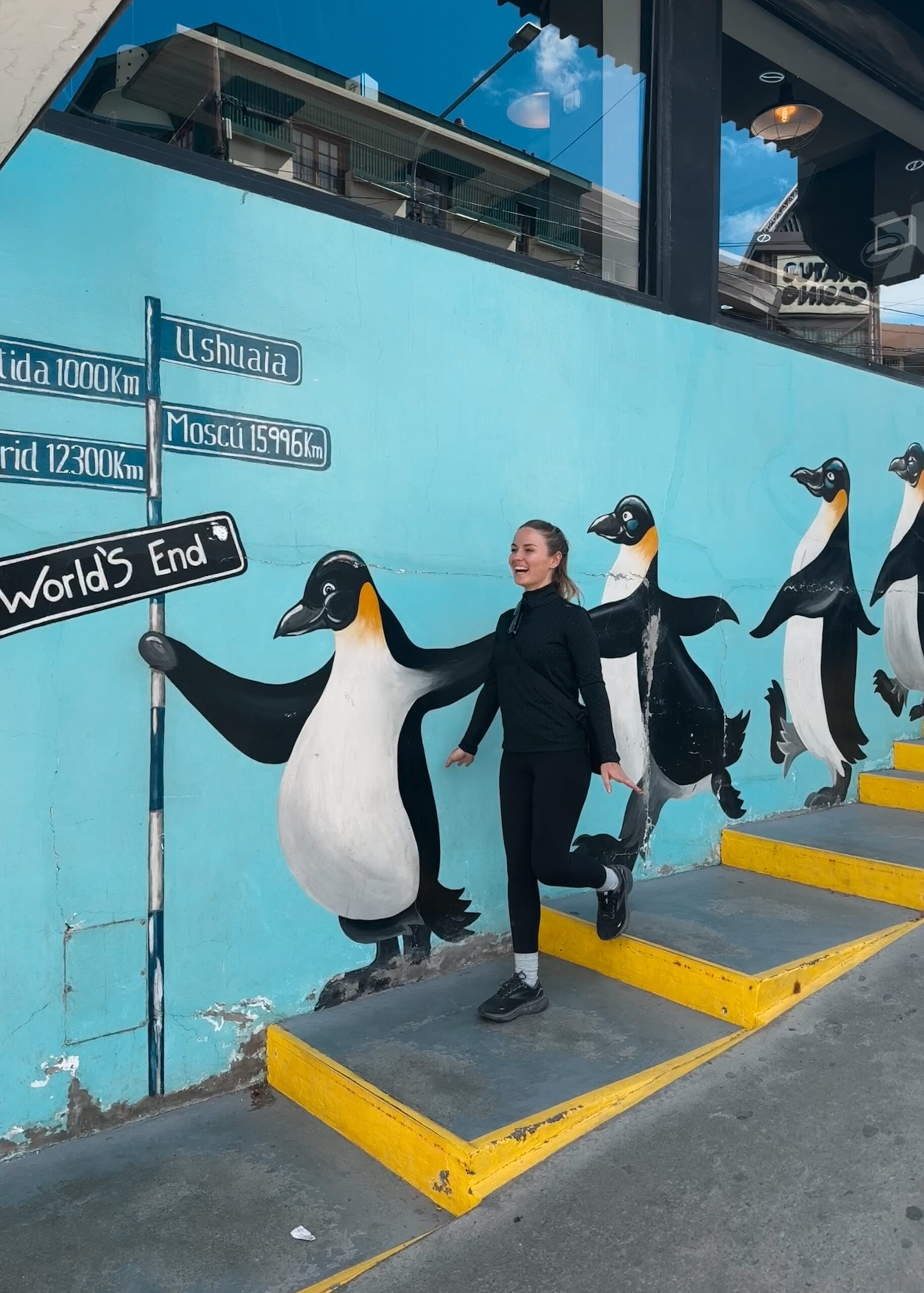 Von Buenos Aires aus sind wir nach Ushuaia geflogen, die südlichste Stadt der Welt. Irgendwie hat schon dieser Ort allein etwas Magisches – besonders wenn man weiß, dass es in ein paar Stunden in die Antarktis geht! In Ushuaia haben wir eine City Tour mit dem blauen Bus gemacht und so einiges von der Stadt gesehen. Am nächsten Tag haben wir uns bei ‚Ushuaia Bike Rental‘ Fahrräder ausgeliehen und so die Gegend erkundet, wir mussten erst ein gutes Stück über befahrene Straßen fahren, aber in der Natur angekommen war es richtig schön und ein toller Ausflug. Wir sind bis zum Ende der Straße von Long Beach gefahren und hatten so eine tolle Sicht auf Ushuaia und haben sogar schon das Schiff entdeckt. Auf dem Rückweg haben wir beim Restaurant „Bodegon Fueguino“ gegessen, das war so lecker und kann ich euch sehr empfehlen. Ansonsten sind wir etwas durch die Souvenir Stores geschlendert und haben hinter unserem Hotel ‚Canal de Beagle‘ eine süße Straße mit einer Pinguin Zeichnung an der Wand entdeckt.