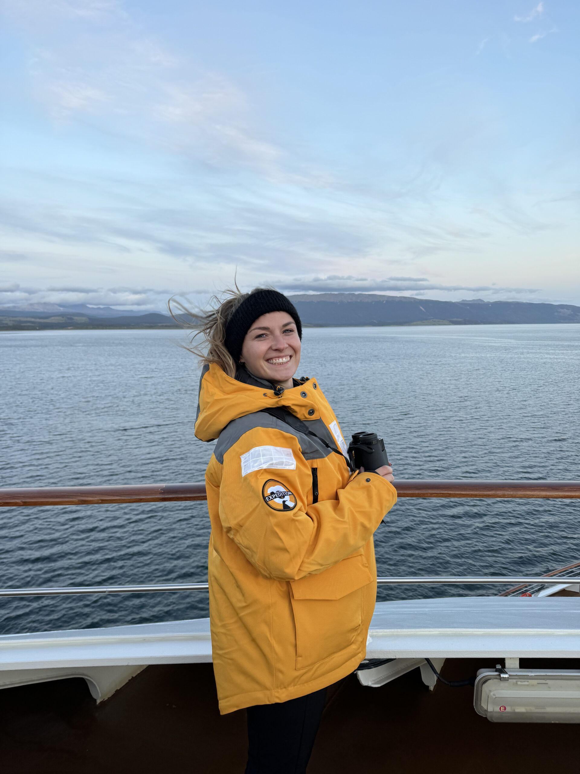 Die Seetage haben wir mit tollen Präsentationen verbracht und auf dem Panorama Deck stundenlang Ausschau nach wildlife gehalten. Es ist verrückt wie viele Wale wir teilweise gesehen habe, Ansonsten war das tägliche Highlight das unglaublich gute Essen, ich habe selten so gut und Abwechslungsreich gegessen, wie auf diesem Schiff. Es ist wirklich unglaublich wie sie es schaffen so lange jeden Tag etwas neues zu kochen und jeden Tag eine so krasse Auswahl zu haben, ohne einmal irgendwo einkaufen gewesen zu sein. Wir waren auch mal am Whirlpool und in der Sauna am Deck, die meiste Zeit haben wir aber probiert Ausschau nach Tieren zu halten oder etwas zu lernen bei den Präsentationen.