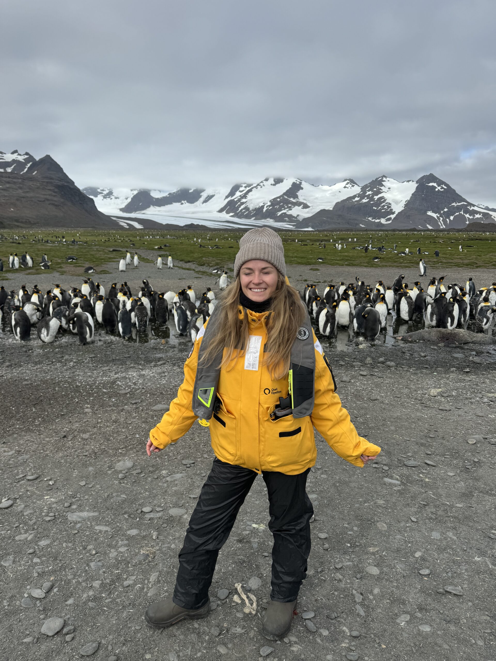 Südgeorgien ist einer der abgelegensten und zugleich faszinierendsten Inseln der Welt. Sie liegt im Südatlantik und gehört politisch zu Großbritannien. 1775 wurde die Insel von James Cook entdeckt, der sie für Großbritannien beanspruchte. Südgeorgien ist etwa 170 km lang und 35 km breit, mit einer Fläche von ca. 3.755 km². Es gibt keine dauerhafte Bevölkerung, nur zeitweise Forscher, Wissenschaftler und Stationspersonal. Im 20. Jahrhundert war Südgeorgien ein Zentrum der Walfangindustrie – alte Walfangstationen wie Grytviken erinnern daran. Der Hauptort von Südgerogien ist der King Edward Point, wo sich eine britische Forschungsstation befindet. Es war eine unglaubliche Erfahrung Südgeorgien und diese Natur zu sehen, wir haben unfassbar viele King Pinguine gesehen und man hat sich gefühlt, wie auf einem anderen Planeten.